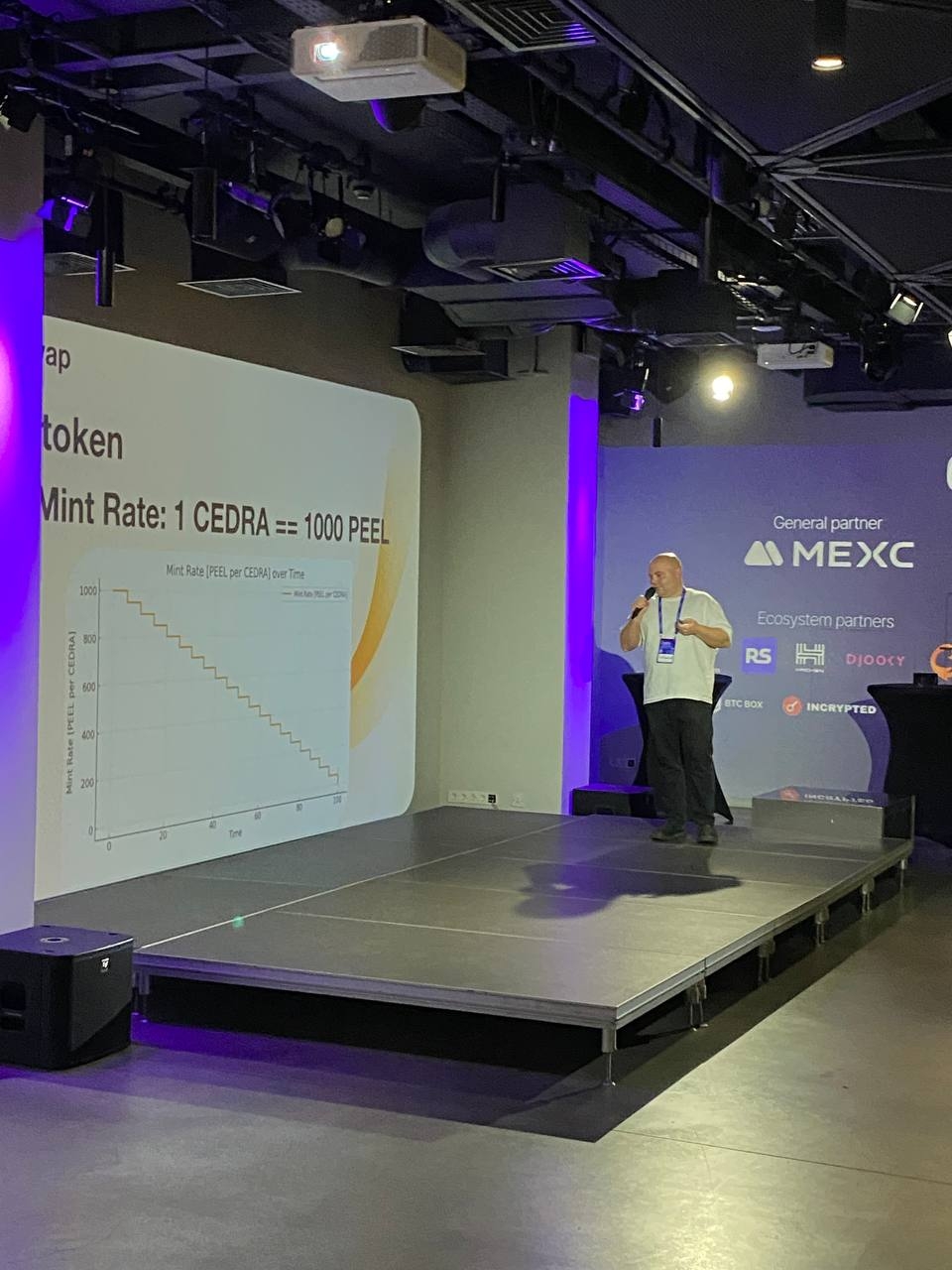 На сцене выступили представители MEXC, PeelSwap, Rent Soft, BTCBox, Cedrum, Bridge, Hacken, Djooky и другие.